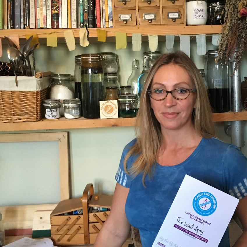 I met with Rebekah Gillmore from Surfers Against Sewage today to discuss ways The Wild Dyery can reduce our use of planetary resources, specifically single-use plastics. I had already structured the company with sustainable ethics in mind so had addressed many issues but as plastic is such an ubiquitous substance, there were some changes we identified that mean we've been awarded 'Plastic Free Approved Status'.