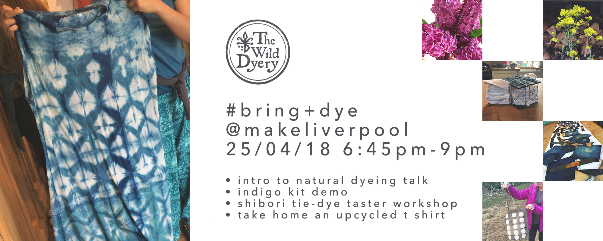 This year, The Wild Dyery are collaborating with Fashion Revolution on an event at Make Liverpool during their week long campaign #FashionRevolutionWeek. This 'bring+dye' workshop gives people who are new to the craft, an opportunity to re-wild an old garment using dyes extracted from local food and plant waste.